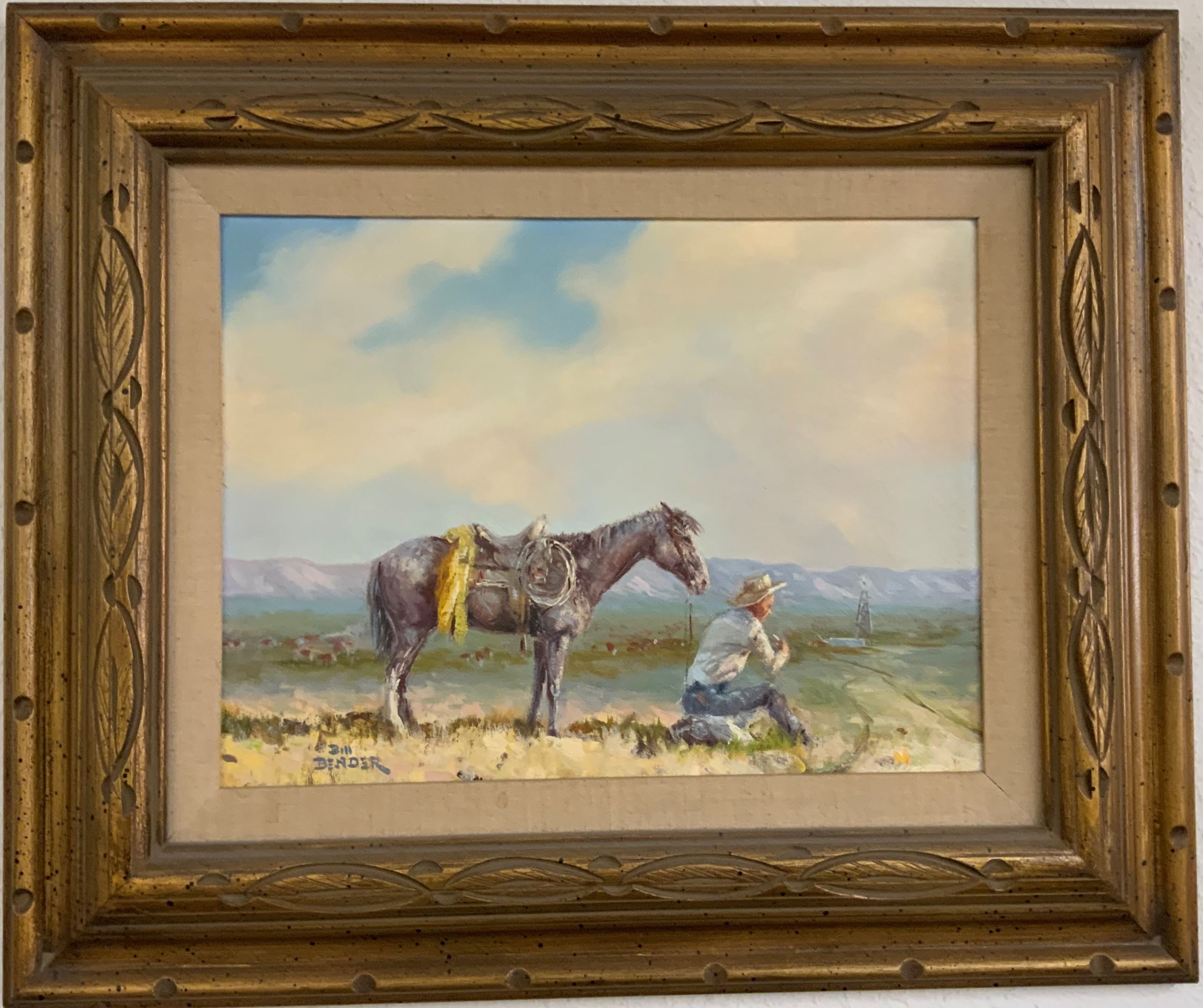 Bill Bender, American Artist, b. 1919 - Time Out to Roll One - Oil on Canvasboard
