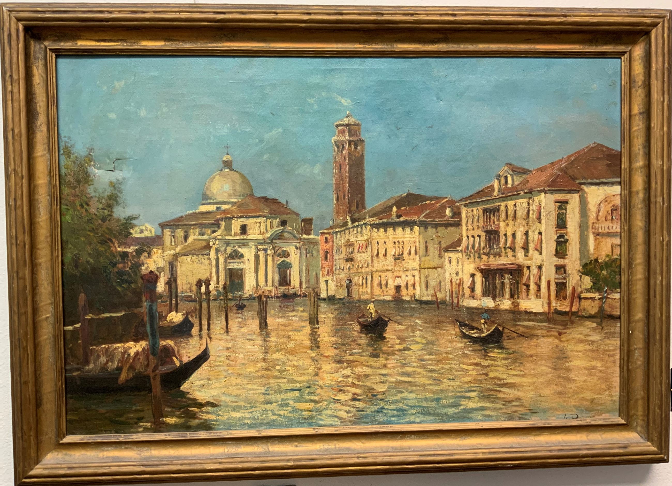 Unknown Artist (Frame Blocks Signature) - Unnamed, (Venice Gondoliers) - Undated - Oil on Linen