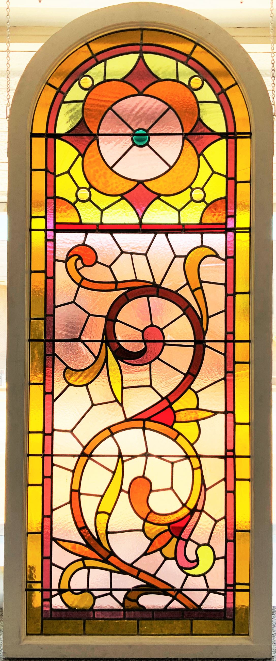 Stained glass window removed from the Wallis House, believed the oldest home (1873) in Rockdale after much of the home was destroyed by fire in 2016